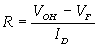 以上兩式中,ID——LED的電流,VF——LED的正向壓降,VOH和VOL為門(mén)電路的輸出高、低電平電壓,常取典型值。