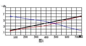 ①、在網(wǎng)絡(luò)上隔兩個或三個放大器(以電平凸起3—4db為準)安裝一種均衡特性具有圖1藍線所示特性曲線的均衡器,從圖中可看到,此種均衡器能很好地補償電纜所造成的中段電平凸起的現(xiàn)象。