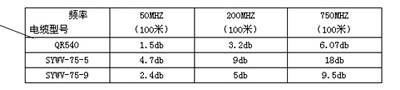 ?、?、電纜對不同頻率的高頻信號有著不同的衰減量,單位長度(一般取100米)的電纜,在其上面?zhèn)鬏數(shù)男盘栴l率越高,衰減就越大。電纜的損耗大小隨頻率變化的這種特性我們稱為電纜的斜率特性,理想的電纜它的傳輸衰減量與傳送信號頻率的平方根成正比。由于電纜存在這種斜率特性,為此在CATV系統(tǒng)中,要進行斜率補償或叫均衡處理。下面是幾種常用電纜的傳輸特性表: