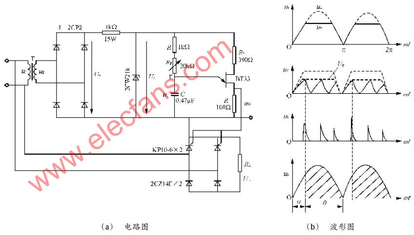 用單結(jié)晶體管構(gòu)成的晶閘管觸發(fā)電路如圖1 所示,觸發(fā)電路的有關(guān)電壓波形如圖2 所示。與單結(jié)晶體管