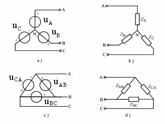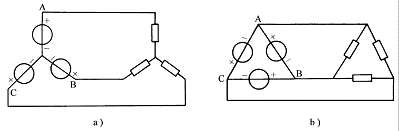 與負(fù)載分別標(biāo)以A相、B相和C相加以區(qū)別。在Y聯(lián)結(jié)方法中,各相電源和負(fù)載的輸出端稱為各相的端點(diǎn),三相公共聯(lián)結(jié)點(diǎn)稱為中性點(diǎn),或簡稱為中點(diǎn)。在△聯(lián)結(jié)方法中,三相電源或負(fù)載分別首尾相連,無中性點(diǎn)。由三相電源或三相負(fù)載連接而成的電路稱為三相電路。
