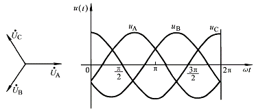 對稱三相電源的波形圖和相量圖分別示于圖4-3-4中。對于△形聯(lián)結(jié)的三相電源,從波形圖可見由于三相電動(dòng)勢串聯(lián)后