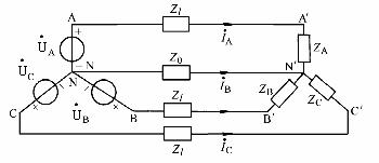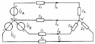 圖4-3-2畫出了電源和負(fù)載均為星形聯(lián)結(jié)的三相電路圖。圖中Zl表示每相線路阻抗,從電源端點(diǎn)A、B、C至負(fù)載端點(diǎn)