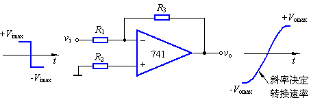 轉(zhuǎn)換速率的大小與許多因素有關(guān),其中主要是與運放所加的補償電容,運放本身各級BJT的極間電容、雜散電容,以及放大電路提供的充電電流等因素有關(guān)。在輸入大信號的瞬變過程中,輸出電壓只有在電路的電容被充電后才隨輸入電壓作線性變化,通常要求運放的SR大于信號變化斜率的絕對值。