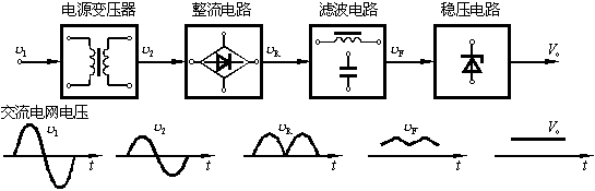 本章后面的知識點將逐個討論小功率整流電路、濾波電路和穩(wěn)壓電路的工作原理。
