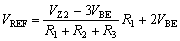 式中VZ2為DZ2的穩(wěn)定電壓,VBE為T3、D1、D2發(fā)射結(jié)(D1、D2為由發(fā)射結(jié)構(gòu)成的二極管)的正向電壓值。在電路設(shè)計(jì)和工藝上使具有正溫度系數(shù)的R1、R2、DZ2與具有負(fù)溫度系數(shù)的T3、D1、D2發(fā)射結(jié)互相補(bǔ)償,可使基準(zhǔn)電壓VREF基本上不隨溫度變化。同時(shí),對(duì)穩(wěn)壓管DZ2采用恒流源供電,從而保證基準(zhǔn)電壓不受輸入電壓波動(dòng)的影響。