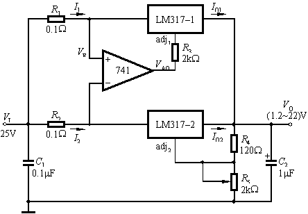(a) 輸出正、負(fù)電壓可調(diào)的穩(wěn)壓電路
