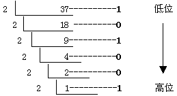 例如, 將10進(jìn)制的37轉(zhuǎn)換成二進(jìn)制整數(shù)的過程如下: