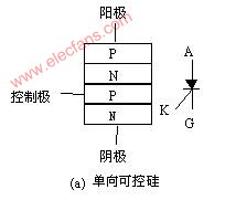 可控硅是由PNPN四層半導(dǎo)體構(gòu)成的元件,有三個(gè)電極,陽(yáng)極A,陰極K和控制極G,也稱晶閘管,