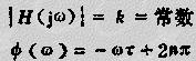 2)群時延? 相移特性可用時延特性來表示,當傳輸信號是調(diào)制信號時,要占據(jù)一段有效頻帶角W,如果能無畸變地傳輸這段有效頻帶,則信號將不失真。用數(shù)學式表示,相移對頻率取導數(shù)應為常數(shù),則群時延為常數(shù),即
