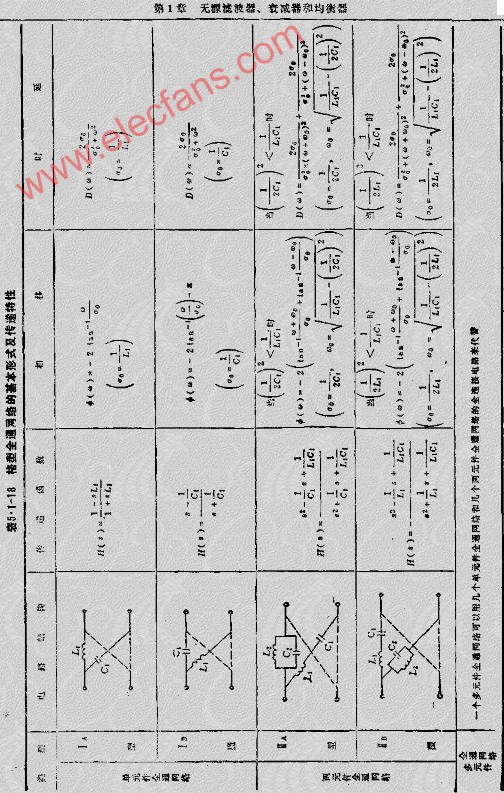 3)格型全通網(wǎng)絡? 實現(xiàn)全能函數(shù)的網(wǎng)絡是格型網(wǎng)絡,它是理想時延均衡器,表5.1-18列出一些常用全通網(wǎng)絡的基本特性及傳輸特性。