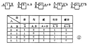 把這三種基本門電路組合起來可以得到各種復合門電路,如與門加非門成與非門,或門加非門成或非門。圖 1 是它們的圖形符號和真值表。此外還有與或非門、異或門等等。