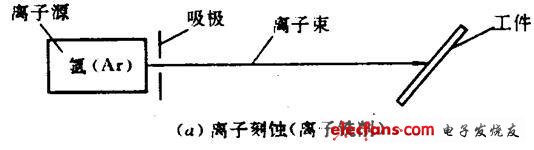 離子束蝕刻 (Ion beam etch) 是一種物理干法蝕刻工藝。由此,氬離子以約1至3keV的離子束輻射到表面上。由于離子的能量,它們會(huì)撞擊表面的材料。晶圓垂直或傾斜入離子束,蝕刻過程是絕對(duì)