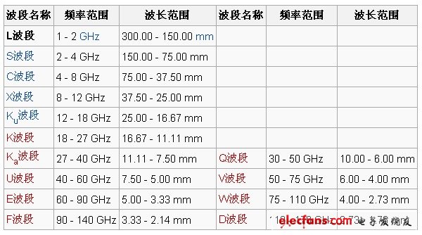 42833常用微波波段劃分表