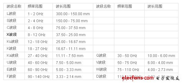 21 根據(jù)IEEE 521-2002標準,X波段是指頻率在8-12 GHz的無線電波波段,在電磁波譜中屬于微波。而在某些場合中,X波段的頻率范圍則為7-11.2 GHz。通俗而言,X波段中的X即英語中