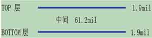HDMI數(shù)據(jù)流以TMDS信號(hào)形式傳輸,包括三對(duì)差分?jǐn)?shù)據(jù)線和一對(duì)差分時(shí)鐘線。根據(jù)HDMI 1.3a規(guī)范,要求TMDS差分阻抗為100Ω±15%。如果按照兩層PCB來設(shè)計(jì),如圖4所示。經(jīng)計(jì)算,兩層PCB的厚度為61.2+1.9 +1.9=65mil,約為1.6mm;PCB板材的介電常數(shù)為4.2。根據(jù)TMDS差分阻抗為100Ω的目標(biāo)要求,將以上參數(shù)帶入差分阻抗計(jì)算軟件 Polar Si9000中計(jì)算,將得到PCB設(shè)計(jì)的指導(dǎo)參數(shù),如圖5所示。