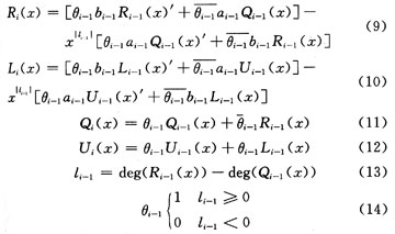 ME算法為1種迭代算法,目的在于求i階余式Ri(x),相應的多項式ri(x)與Li(x)滿足: