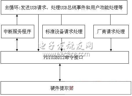 (2)PDIUSBD12命令接口:對PDIUSBD12器件進(jìn)行操作的模塊子程序集。