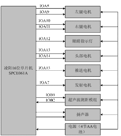 為了提高廣大單片機(jī)愛(ài)好者學(xué)習(xí)單片機(jī)的興趣,凌陽(yáng)科技教育推廣中心推出了應(yīng)用SPCE061A作為主控制器,外加電機(jī)驅(qū)動(dòng)電路制作的智能機(jī)器人。該機(jī)器人采用特定人語(yǔ)音識(shí)別對(duì)機(jī)器人進(jìn)行控制,可以完成向前走、倒退、左轉(zhuǎn)、右轉(zhuǎn)、跳兩首舞曲、向左瞄準(zhǔn)、向右瞄準(zhǔn)、發(fā)射、連續(xù)發(fā)射等功能。在此基礎(chǔ)上,配合凌陽(yáng)科技教育推廣中心推出的超聲波測(cè)距模組,為機(jī)器人增加了活動(dòng)過(guò)程中實(shí)時(shí)檢測(cè)前方障礙物、遇到障礙停止運(yùn)動(dòng)并向前方發(fā)射飛盤(pán)等功能,進(jìn)一步豐富了機(jī)器人的功能,可以大大提高在校學(xué)生學(xué)習(xí)單片機(jī)的興趣。