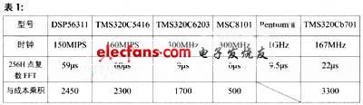 表1是基于上述某些參數(shù)對一些DSP芯片所作的比較。