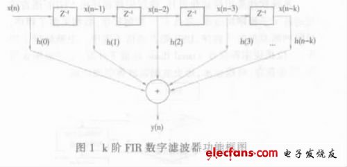 FIR濾波器具有幅度特性可隨意設(shè)計(jì)、線性相位特性可嚴(yán)格精確保證等優(yōu)點(diǎn),因此在要求相位線性信道的現(xiàn)代電子系統(tǒng),如圖