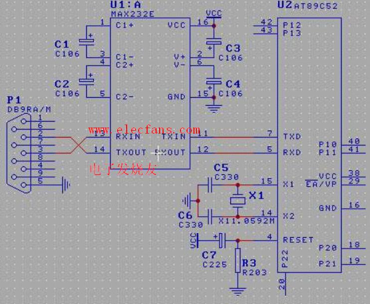 小弟最近學單片機,需要畫一個擴展板,芯片為89C52,要求畫兩個串口,電平轉(zhuǎn)換芯片采用MAX232,請問各位大哥大姐該如何畫,求指導!!!