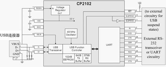 圖2? CP2102的內部結構圖