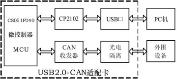 圖1? USB2.0-CAN適配卡框圖