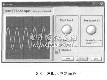 圖8中,用戶對虛擬示波器面板上的垂直幅度調節(jié)、水平寬度調節(jié)等按鈕操作時,系統(tǒng)會將相應的操作命令傳送給下位機,并由下位機調節(jié)垂直幅度和水平時基等,從而實現用戶對虛擬示波器系統(tǒng)的操作。