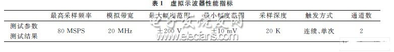 采用FPGA處理器和ALTERA公司的NiosⅡ軟核完成虛擬示波器系統(tǒng)設計后,進行了多次測試,其性能指標如表1所示。
