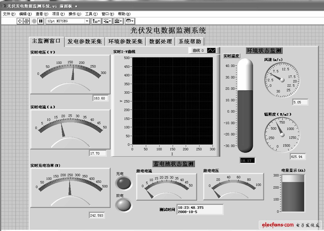 本文將虛擬儀器技術(shù)應用于光伏發(fā)電系統(tǒng)的數(shù)據(jù)監(jiān)測,借助于Labview強大的軟件支持構(gòu)建了一個完整的光伏監(jiān)測和分析系統(tǒng)。該系統(tǒng)可以方便的對光伏發(fā)電系統(tǒng)的發(fā)電特性及周圍環(huán)境進行實時監(jiān)測,得到可靠的監(jiān)測數(shù)據(jù)。選用了適合本系統(tǒng)的各類傳感器及變換器,并闡述了建立本監(jiān)測系統(tǒng)數(shù)據(jù)庫的方法,創(chuàng)新性的應用DataSocket通信技術(shù)和Labview遠程訪問技術(shù)實現(xiàn)了系統(tǒng)遠程監(jiān)測的功能。由于FieldPoin模塊化及Labview軟件自身的特點,在需要研究其他運行特性的時候可以很方便的進行擴充,本系統(tǒng)運行穩(wěn)定,界面友好,操作簡單方便,而且具有成本低,使用方便的特點,是一套通用的監(jiān)測系統(tǒng),具有很好的應用前景。