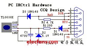 為了能使此遙控器控制電腦就須將紅外信號送入主機內(nèi),有兩種可行的接口,分別為電視卡的紅外接收頭和串口。