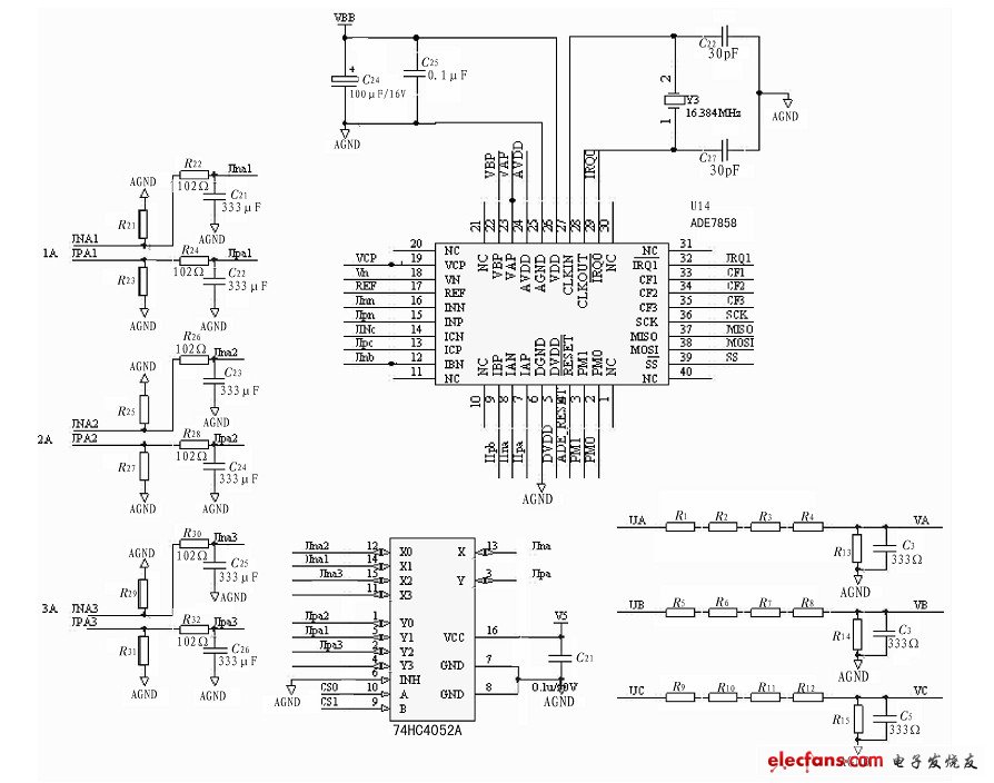 用F2812采集信號(hào),其ADC模塊的電壓范圍為0~3V,所以必須采用信號(hào)調(diào)理電路。三個(gè)都是反向加法器,采集的信號(hào)頻率范圍為1~100KHZ,選擇的運(yùn)放為L(zhǎng)M356,其帶寬增益為300KHZ,我想問