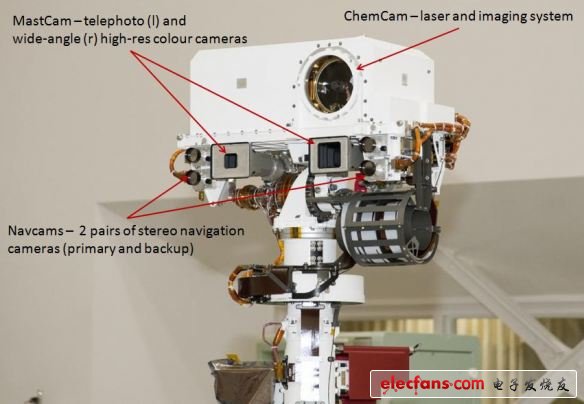 。這臺儀器相當(dāng)于科學(xué)家的一個高科技手持透鏡,可以對準(zhǔn)他們希望對準(zhǔn)的任何地方?! ?,桅桿相機(jī):安裝在好奇號主車身上方的桅桿上,由兩個彩色相機(jī)組成,是好奇號的主要成像工具。它相當(dāng)于好奇號的左、右眼,可以拍攝