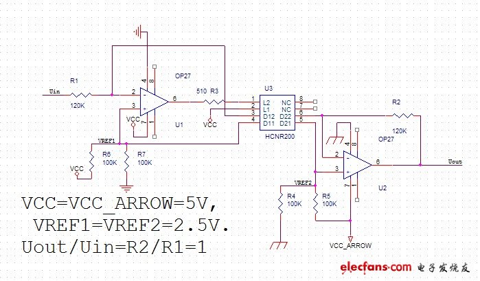 圖片是網(wǎng)上找到的基于線性光耦HCNR200/201的應(yīng)用電路圖,我想問(wèn)圖中前面這個(gè)運(yùn)放的輸入輸出是怎么計(jì)算的,前面那個(gè)運(yùn)放的 - 端輸入電壓是怎么計(jì)算的,這個(gè)和光耦聯(lián)系起來(lái)怎么的。求解答謝謝?。?!