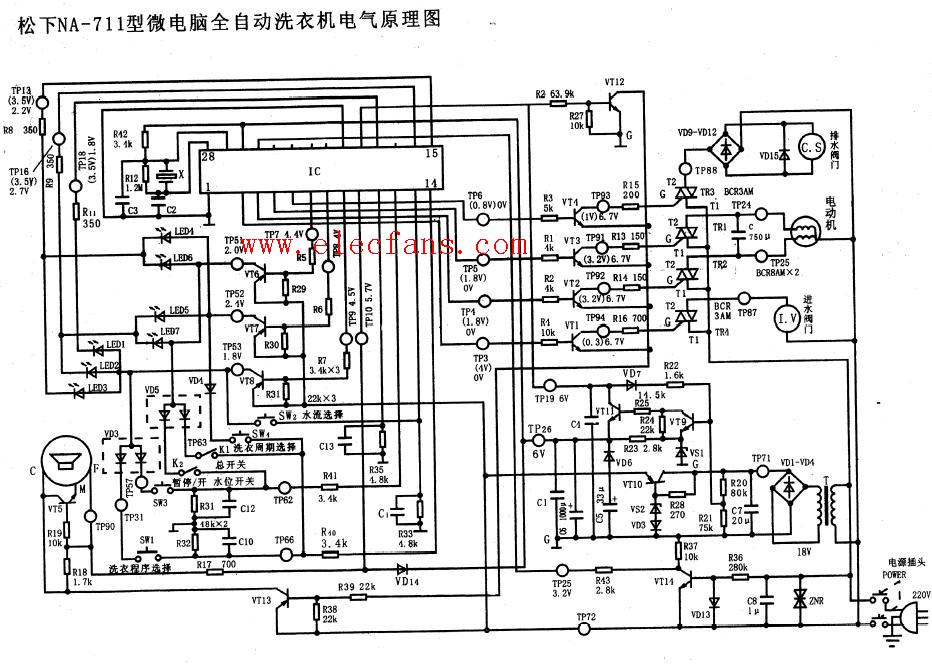 24 松下微電腦全自動洗衣機(jī)電路圖NA-711型
