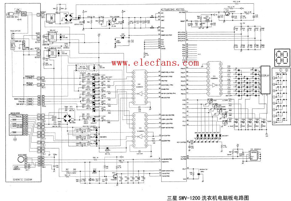 三星SMV-1200 洗衣機(jī)電腦板控制部件接線圖