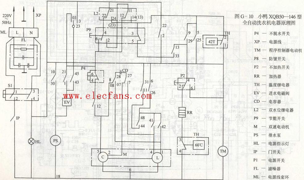 小鴨全自動(dòng)洗衣機(jī)電路原理圖XQB50-146型
