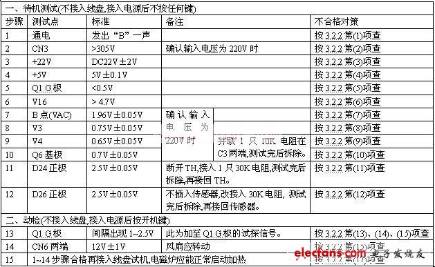 由于勁霸458電磁爐工作時,主回路工作在高壓、大電流狀態(tài)中,所以對電路檢查時必須將線盤(L1)斷開不接,否則極容易在測試時因儀器接入而改變了電路參數造成燒機。接上線盤試機前,應根據3.2.1<<主板檢測表>>對主板各點作測試后,一切符合才進行。