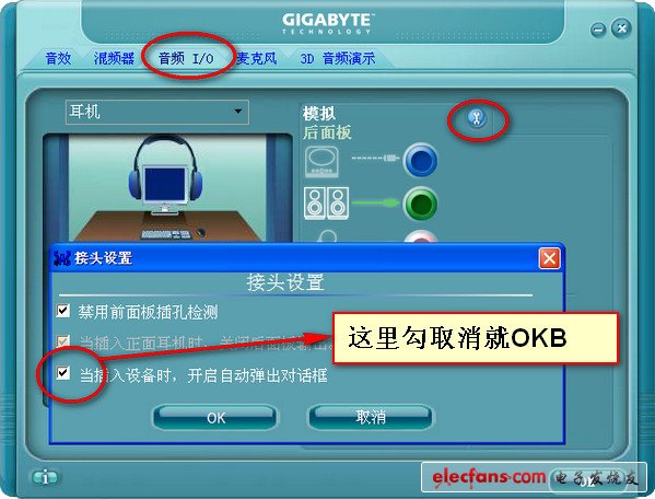 三, 遇到有音響和耳機同時使用的電腦,有時候插上耳機,音響就沒有聲音,或是耳機聽有聲音,音響沒有聲音,或是電腦機箱前面的耳機接口插上沒有聲音的,這個都是要在音頻輸入輸出那里設(shè)置下的。如勾選當(dāng)插入正面耳機時,關(guān)閉后面板輸出,機箱前的耳機就可以聽到聲音了,如勾選當(dāng)插入設(shè)置設(shè)備管理器時,開啟自動彈出對話框,讓你選擇是前面板輸出,還是后面板。(要打開音頻設(shè)置面板是在電腦的 控制面板 里找)