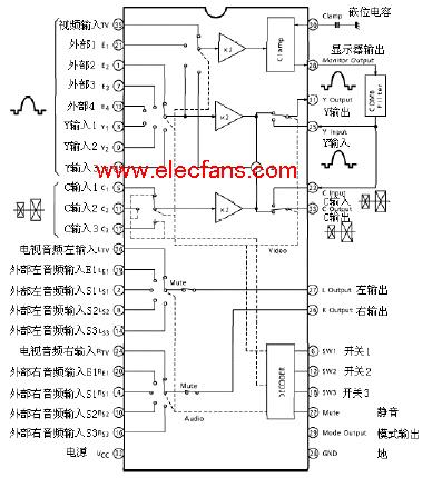 TA8747N 應用于電視機的音視頻開關(guān)(帶S端子)