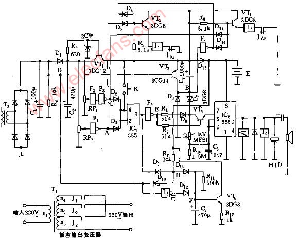 基于NE555開關(guān)電源插座電子設(shè)計(jì)圖