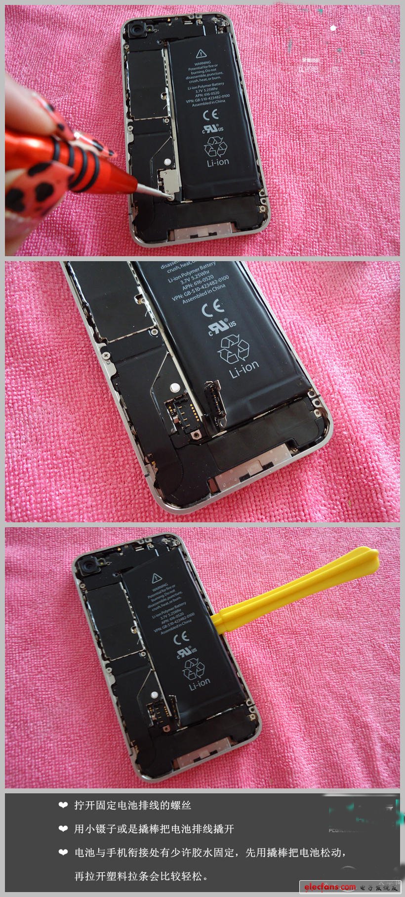 電子發(fā)燒友網(wǎng)>電子技術(shù)應(yīng)用>家電維修>手機(jī)維修>接著拆內(nèi)置電池 - iPhone4 終極換屏教程