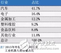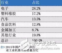 工業(yè)機(jī)器人在國(guó)內(nèi)的應(yīng)用以汽車以及電子工業(yè)居多,此外還有橡膠塑料、軍工、航空制造、食品工業(yè)、醫(yī)藥設(shè)備、金屬制品等領(lǐng)域。目前中國(guó)工業(yè)機(jī)器人市場(chǎng)主要以關(guān)節(jié)坐標(biāo)式機(jī)器人為主,因工業(yè)機(jī)器人的大客戶都來