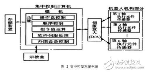 對于具有多自由度的工業(yè)機(jī)器人而言,集中控制對各個控制軸之間的藕合關(guān)系處理得很好,可以很簡單的進(jìn)行補(bǔ)償。但是,當(dāng)軸的數(shù)量增加到使控制算法變得很復(fù)雜時(shí),其控制性能會惡化。而且,當(dāng)系統(tǒng)中軸的數(shù)量或控制算法變得很復(fù)雜時(shí),可能會導(dǎo)致系統(tǒng)的重新設(shè)計(jì)。與之相比,分布式結(jié)構(gòu)的每一個運(yùn)動軸都由一個控制器處理,這意味著,系統(tǒng)有較少的軸間禍合和較高的系統(tǒng)重構(gòu)性。
