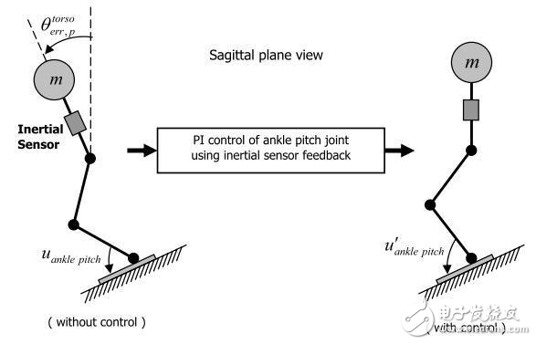 仿人機(jī)器人一直是自動(dòng)控制領(lǐng)域研究的熱點(diǎn)。在模仿人類進(jìn)行邁步行走時(shí),由于仿人機(jī)器人的重心經(jīng)常要處于中心線以外的區(qū)域,使得它的身體很難保持站姿平衡,能夠穩(wěn)定地實(shí)現(xiàn)雙足行走是仿人機(jī)器人研究的重點(diǎn)也是難點(diǎn)。