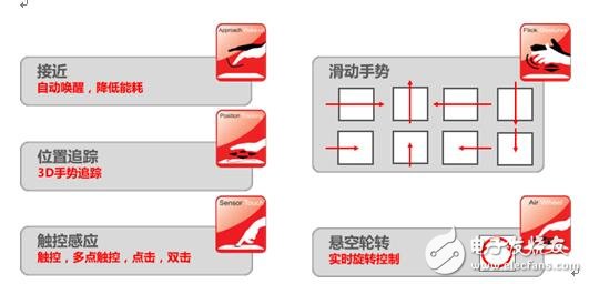 GestIC傳感技術(shù),將2D多點觸摸和3D手勢識別功能輕松集成至其顯示應(yīng)用中。由于采用了基于電場的技術(shù),現(xiàn)在我們可以跟蹤顯示屏表面甚至是距顯示屏上方20 cm以內(nèi)的手和手指手勢。此外,該開發(fā)工具包提供了易于