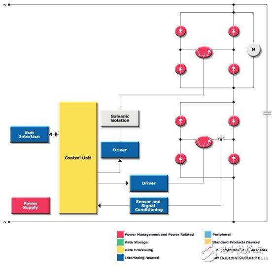 電源電路包含用于反相單相電機(jī)的分立半導(dǎo)體器件。在各種各樣的交流電動(dòng)機(jī)中,單相電動(dòng)機(jī)是一種很好的選擇,只需要單相電源來(lái)提供電動(dòng)機(jī)所需的電能。其中最常見的單相電機(jī)是分相電機(jī),用于許多應(yīng)用,如泵,臺(tái)鉆,壓縮機(jī),吸塵器,電動(dòng)縫紉機(jī)等。