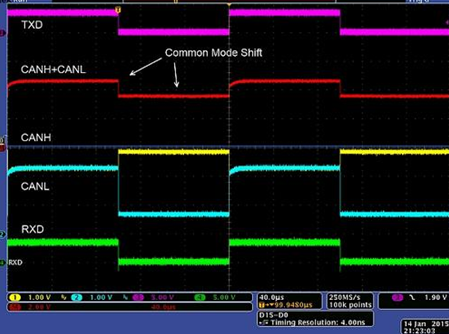 CAN_H沒有明顯的上升。用兩個這樣的DSP可以通信。ARMTM32,bxCAN模式,vp230收發(fā)器,隱形電平為-2.5V,(也是負的)顯性電平差值為3.3V。DSP和ARM之間不能通信。為什么DSP和ARM有這樣的區(qū)別,問題在哪?