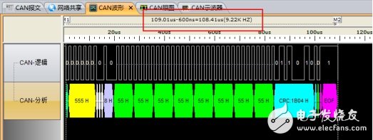 通過CAN-Scope總線分析儀的報文接收和示波器,可以將每一幀報文跟波形做一一對應(yīng),快速分析總線上的報文時間和波形情況,實現(xiàn)CAN總線的快速故障定位和干擾排除。
